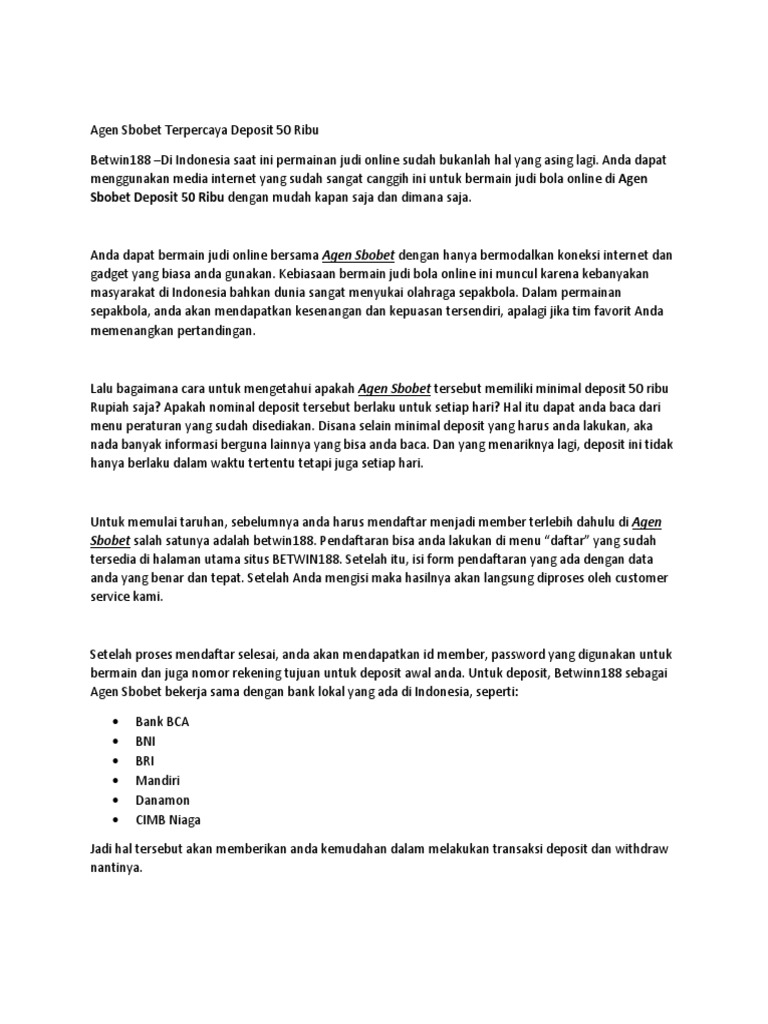 Daftar Agen Judi Bola Resmi Bonus 50 Deposit Pdf