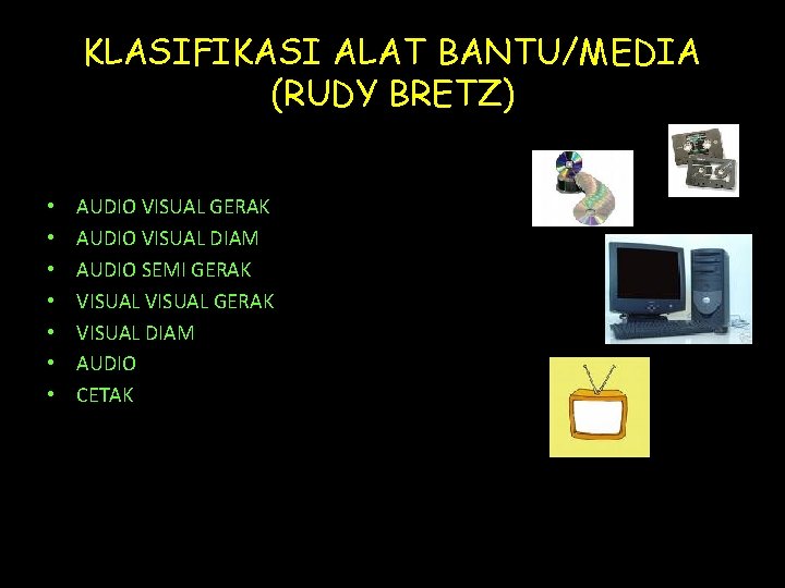 Slide atau filmstrip yang ditambah dengan suara bukan alat audio-visual yang lengkap sebab suara dan juga rupa berada terpisah oleh karena itu slide atau. Media audio yang menampilkan simbol digit dan analog dalam bentuk auditif adalah abstrak sehingga pada hal-hal tertentu memerlukan bantuan pengalaman visual. Film suara pita video film tv.