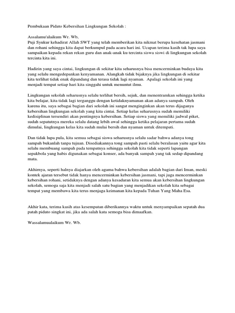 Pidato Kebersihan Lingkungan Sekolah Pdf