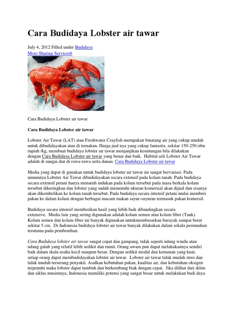 Cara Budidaya Lobster Air Tawar Pdf