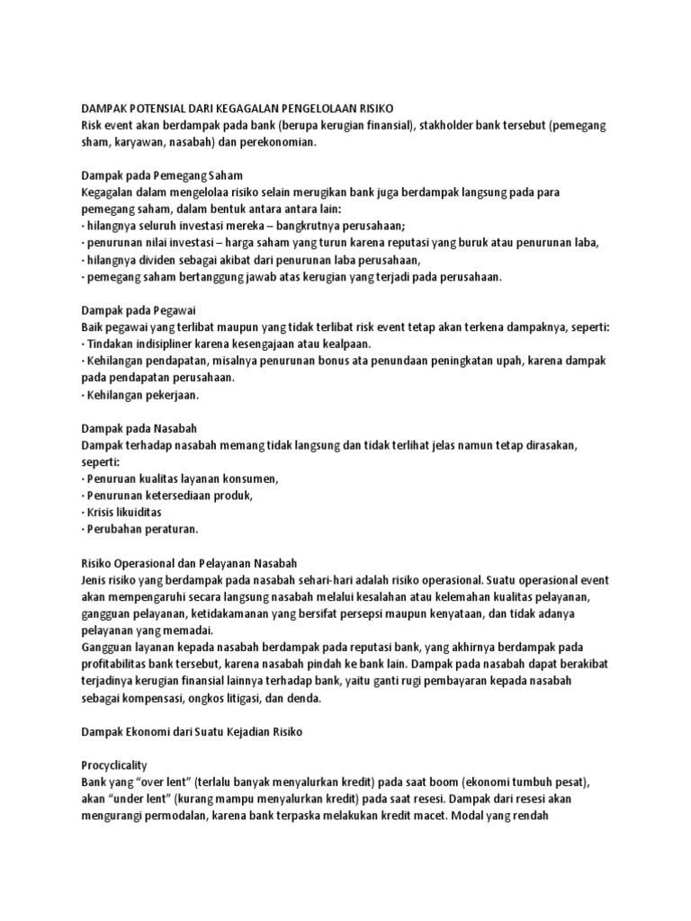 Dampak Potensial Dari Kegagalan Pengelolaan Risiko Pdf
