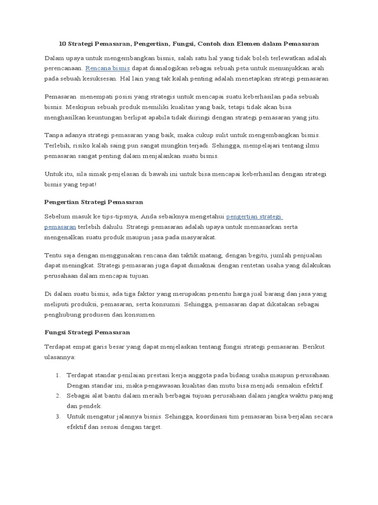 Strategi Pemasaran Pengertian Contoh Jenis Konsep Tujuan Fungsi Lengkap
