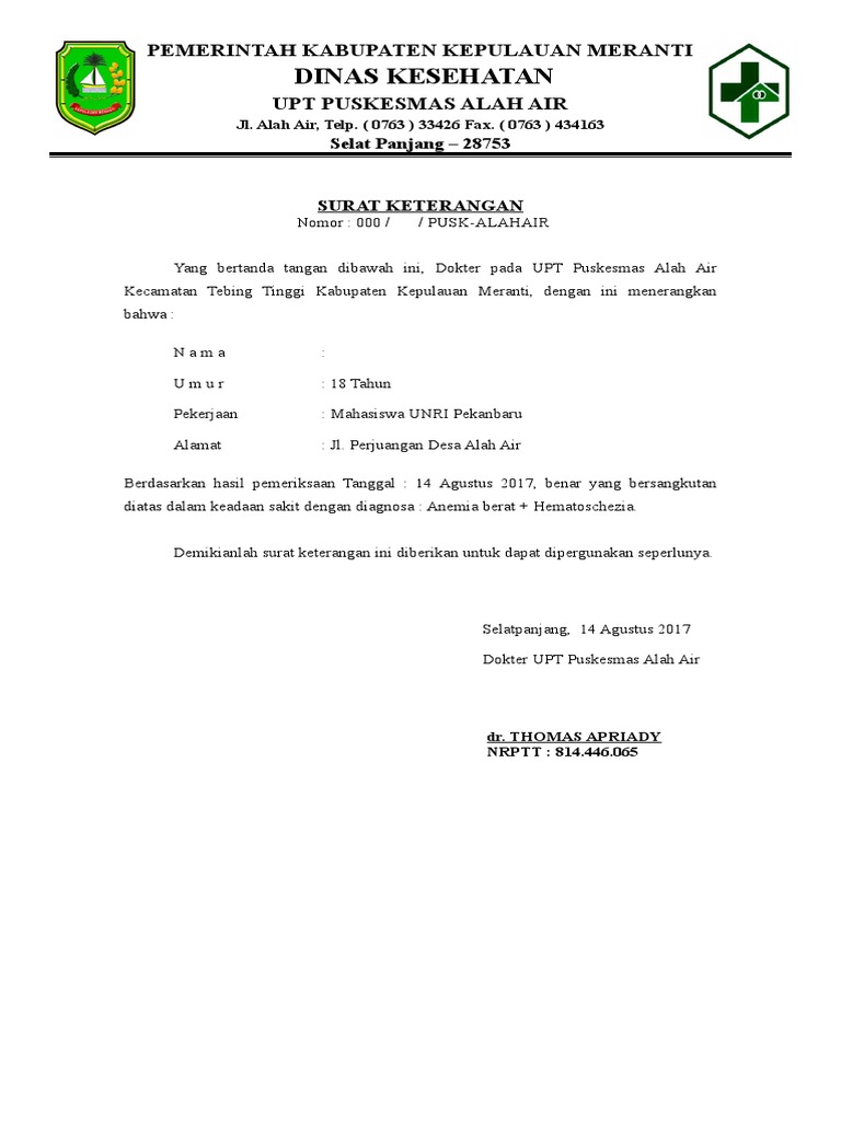 Contoh Surat Keterangan Dokter Dan Kwitansi Periksa