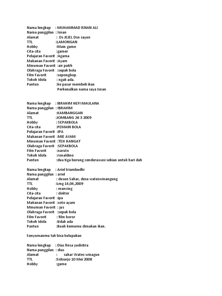 Biodata Siswa Pdf