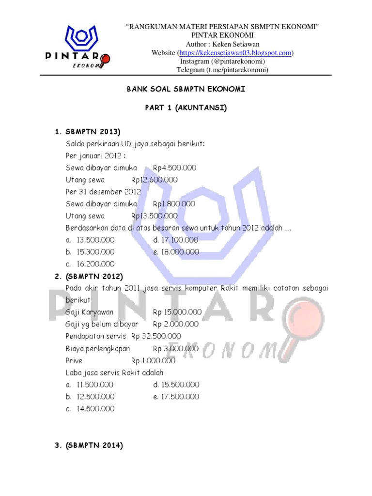 Soal sbmptn ekonomi. 1Latihan Soal Tes Potensi Akademik TPA SBMPTN. Kita akan bersama-sama memahami soal-soal yang diprediksi muncul pada saat ujian UTBK SBMPTN nanti. Download Soal Pembahasan SBMPTN TPA.