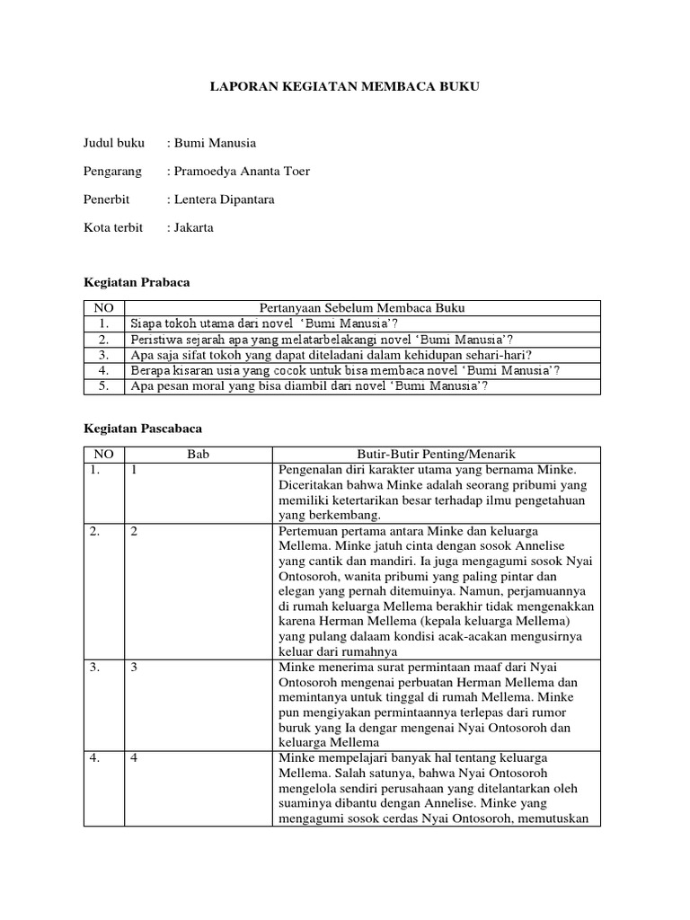 Ringkasan Bumi Manusia Karya Pramoedya Ananta Toer Bahasa Indonesia Sma Smk Detail Catatan Mejakita
