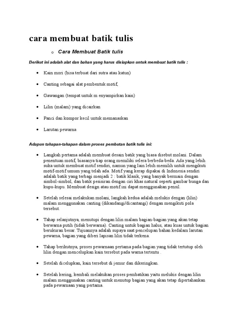 Cara Membuat Batik Tulis Sederhana Untuk Tugas Sekolah Portal Jember