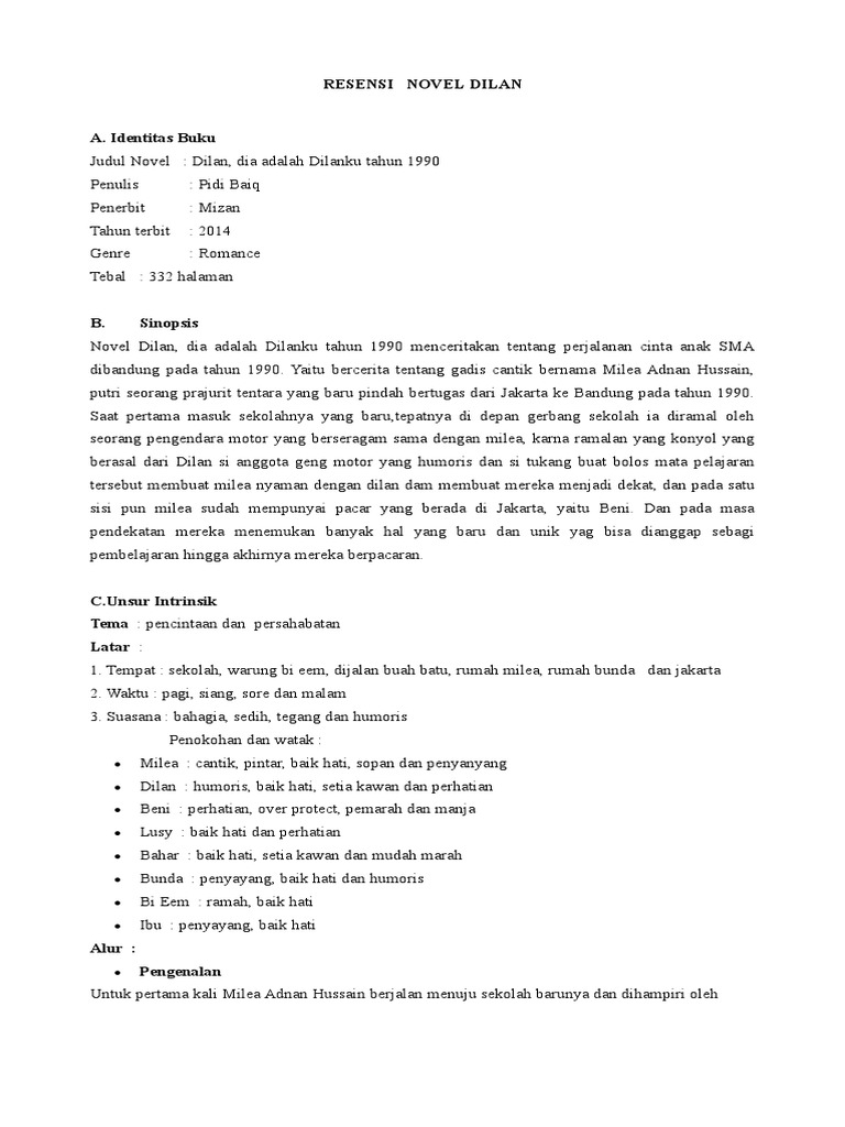 Unsur Intrinsik Novel Milea Suara Dari Dilan Beinyu Com