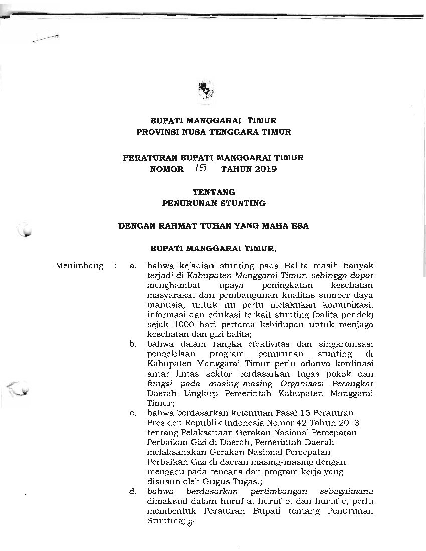 Peraturan Bupati Manggarai Timur No 15 Tahun 2019 Tentang Penurunan Stunting